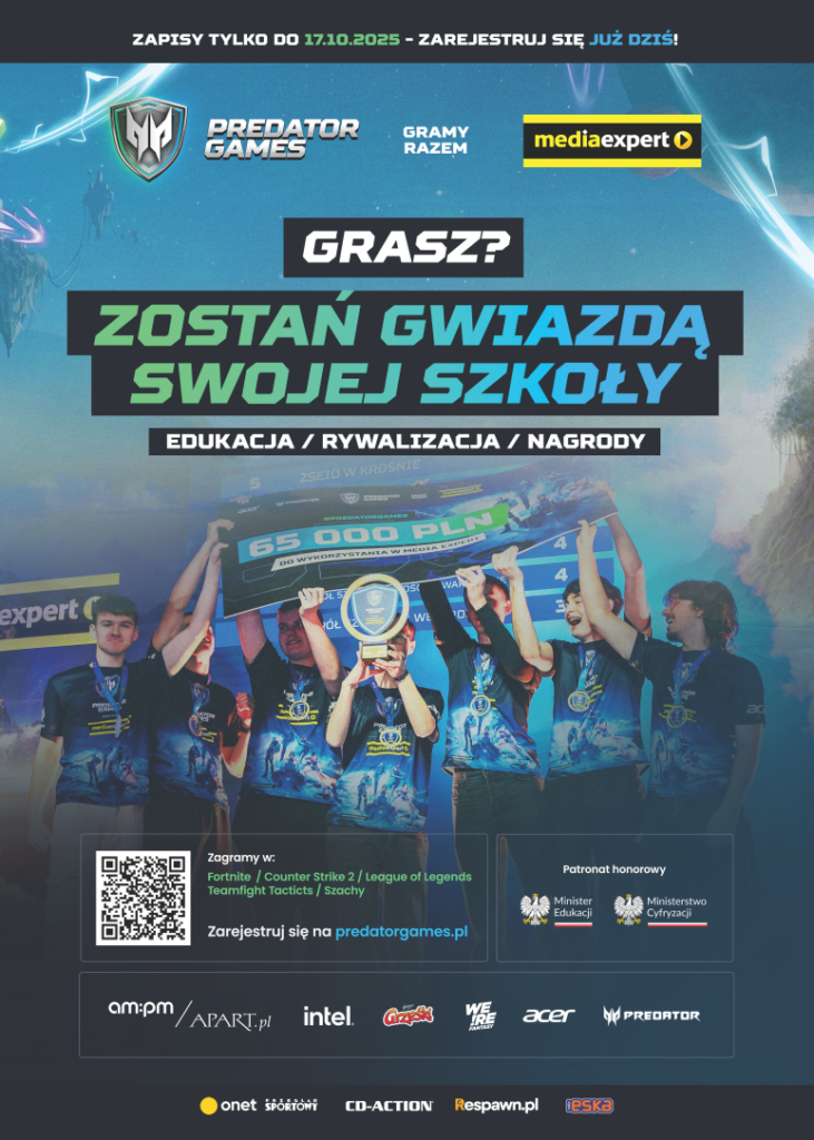 Z przyjemnością ogłaszamy, że nasza szkoła bierze udział w trzecim sezonie Predator Games – prestiżowym ogólnopolskim turnieju esportowym dla uczniów szkół podstawowych i ponadpodstawowych!
