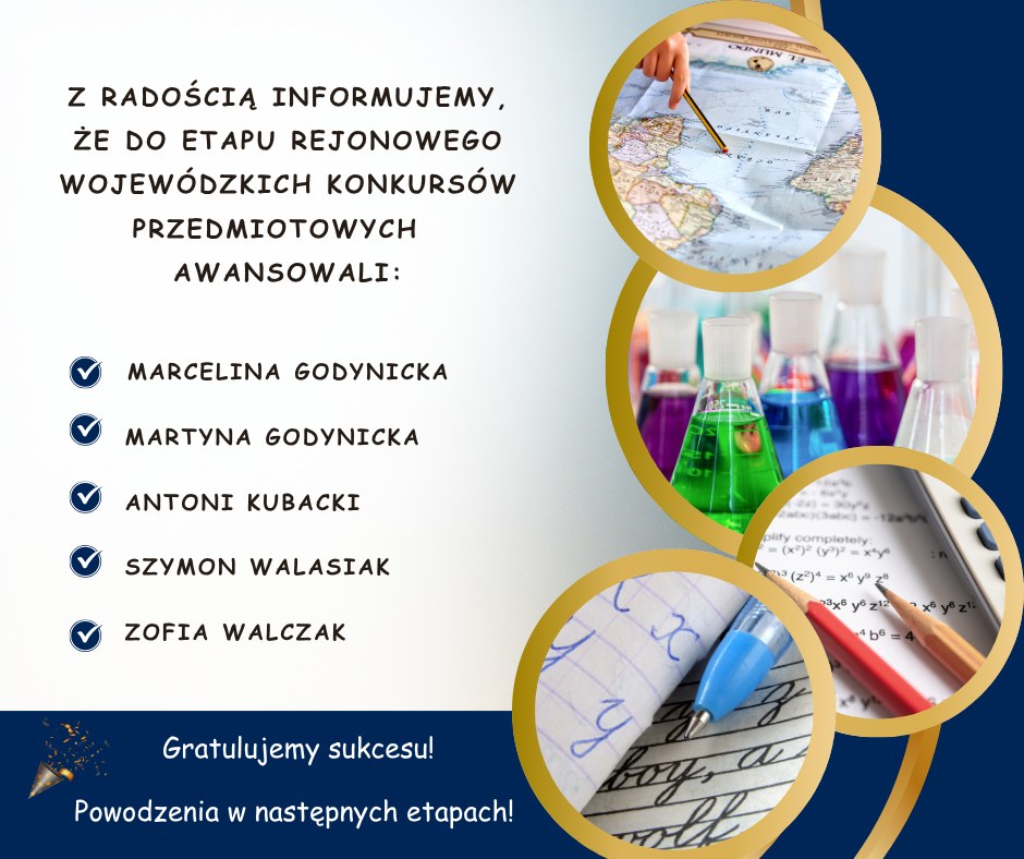 Kolejne etapy konkursów wojewódzkich dla naszych uczniów